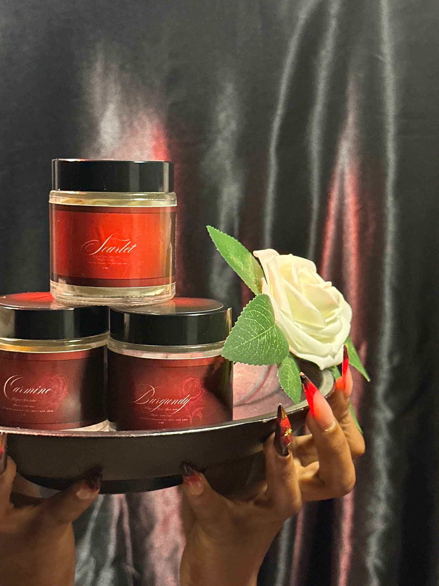 This collection of our whipped shea butter and our hair and body oils contain luxury base scents that act as your favorite base layer to your favorite fragrances. With elements like smoothy buttery textures that melts on the skin and soothing notes like warm vanilla, jasmine, iris, sweet pistachio, Shade red is the collection that many customers love that adds to their daily fragrance routines and acts as a beauty secret for additional skin healing and care benefits!
