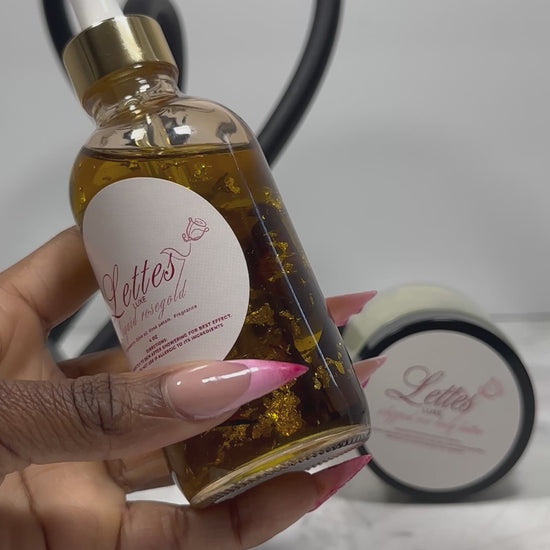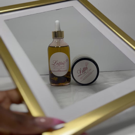 This rose bundle includes two luxurious skincare products: Rose gold oil and whipped rose body butter. The oil hydrates and nourishes skin with its blend of essential oils and rose petals, while the body butter soothes and moisturizes with its rich, whipped texture. Achieve radiant, glowing skin with this dynamic duo.